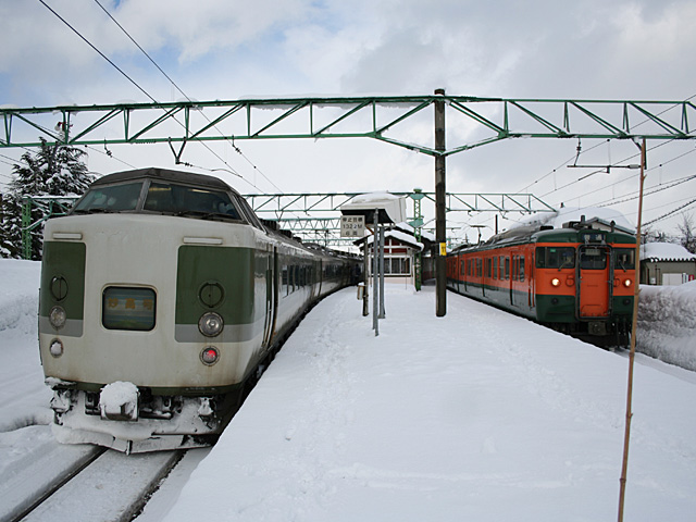妙高3号と交換 直江津遠征へ行くと、高確率でこのN9編成に遭遇します。 211系の波が、すぐ目の前まで迫っているからなのかもしれません・・ |