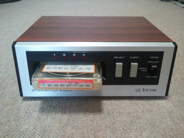 |  | オークションで落札した、VICTOR 8トラックプレーヤー ED-105が今日届きました。 これは1970年代中盤に発売された品物ですが、なんとデッドストック品とのことです。
