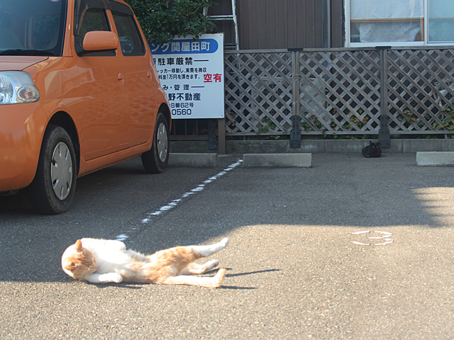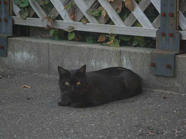 と、考えている間に、白と黒のぬこに出会う。 管理人は、どういうわけか黒が一番好きなのです。おそらくサブ○ナの影響だろう。 白はなついてくれるのですが、黒は近付くとすぐに逃げてしまいます。 この辺りは、ノラはそこそこいるかと思いますが、この黒は首輪がついていたので、飼いぬこなのでしょう(愚 |