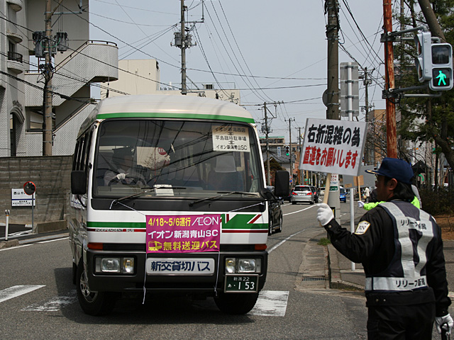 ** イオン新潟青山店 新潟西線*1 | 2013.04.18-05.06 新店舗駐車場の満車対策として イオン新潟西店や平島臨時駐車場から、新店舗へのシャトルバスを運転