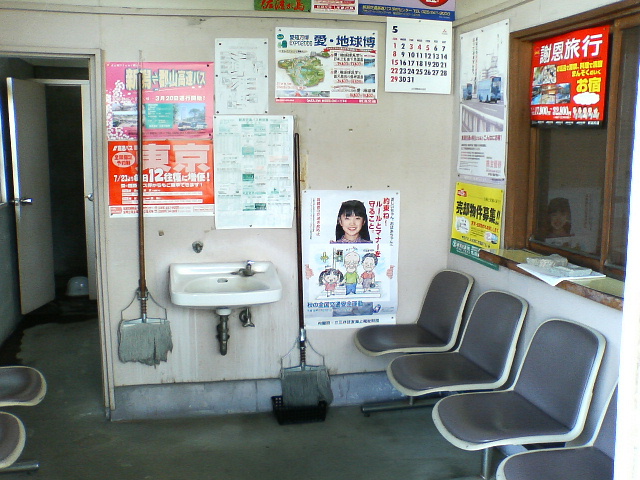 ** 酒屋車庫*2 | 右側の窓口は、今は閉鎖。おそらく回数券などを発売していたかと思われます。 奥に薄暗いトイレが・・・。