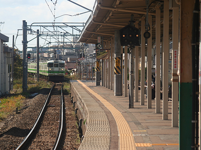** 新潟駅付近線路切替工事*4 | | 到着後は折り返しの吉田行になるのですが、現状の白山駅には折り返し設備が用意されていないので、関屋方の線路を利用したスイッチバック方式を用いて、上り専用の2番線ホームまで列車を動かさなければなりません。