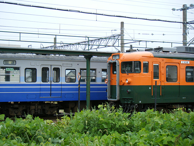 ** 169系 | 2008.09 期間限定で しなの鉄道で営業運転されている169系S52編成が湘南色に塗り戻されました。 またこの日は、信越線開業120周年記念として直江津まで乗り入れ、多くのファンで賑わいました。