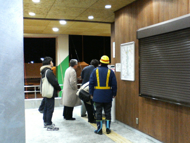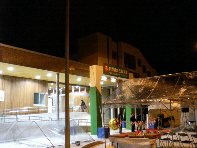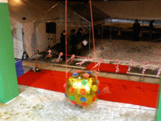 ** 当日早朝 | | 開業日当日の早朝 この時期はまだ真っ暗です。 風の強い中、セレモニーの準備が行われていました。