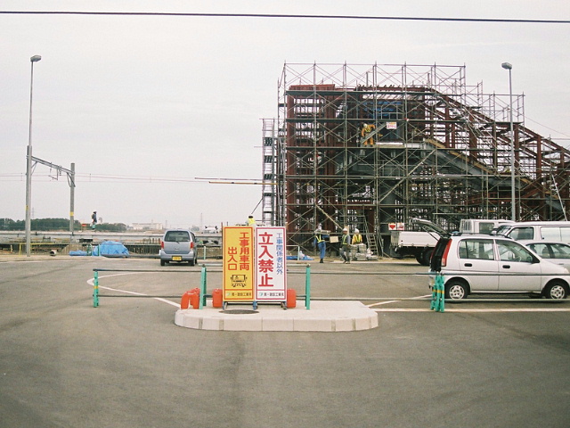 ** 秋頃 | | 秋頃になって建設が本格的になりました。 エレベーターと連絡通路の基礎工事をしているところです。