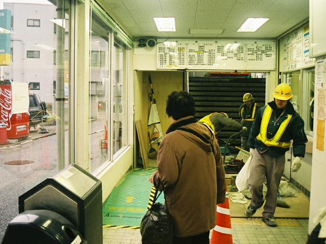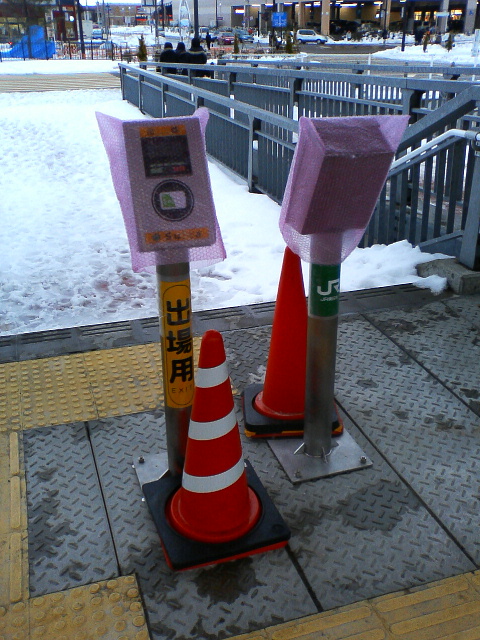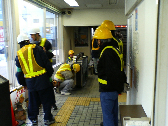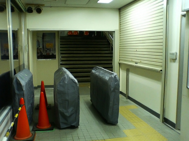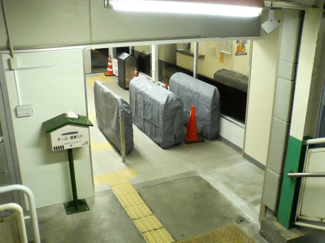 自動改札機設置中。