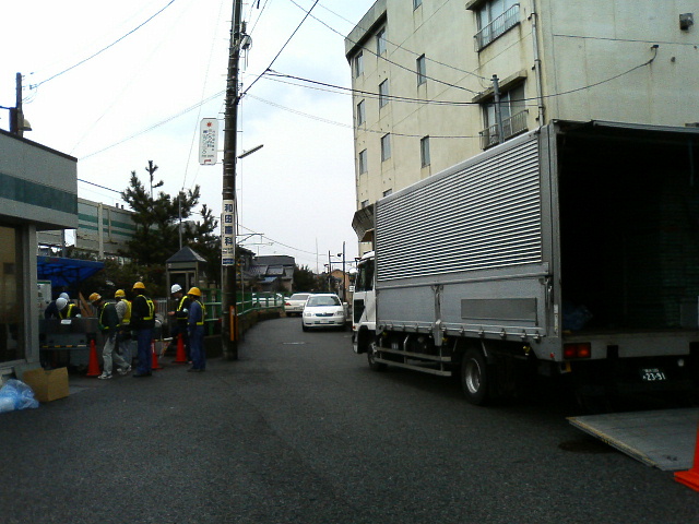 画像右は機械を運んできたであろう箱トラの姿が。